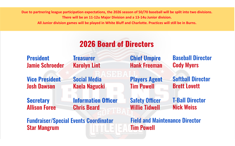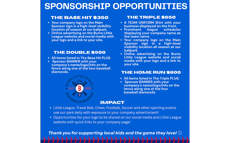 Burns Little League 192 Bobcat Ct. Burns, Tennessee 37029
